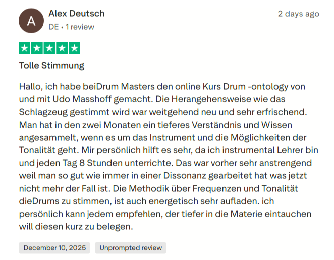Udo hat es geschafft die Drum-Sound Matrix (DSM- Methode) zu knacken. Er ist der Spezialist in Sachen Drum-Tuning und Drum-Sound. Lerne bei ihm folgendes: